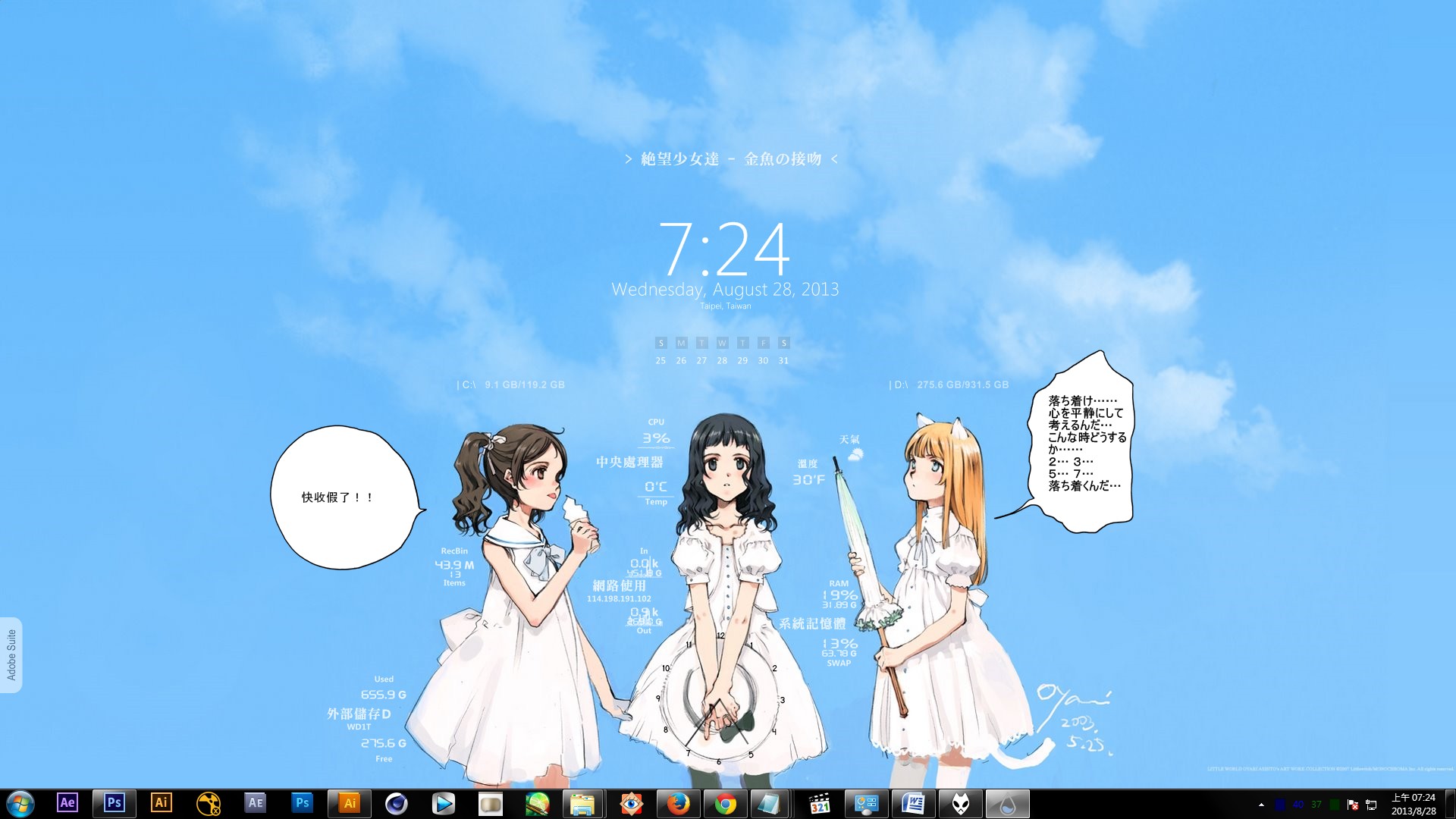 加上自己用Rainmeter做的氣泡框,配上大槍的桌布~